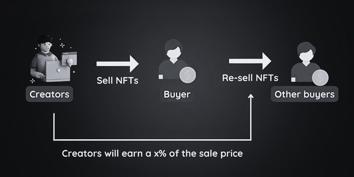 In simple terms, NFT royalties are automatic payments that go to the original creator whenever their NFT is resold. Not just once. Every time.